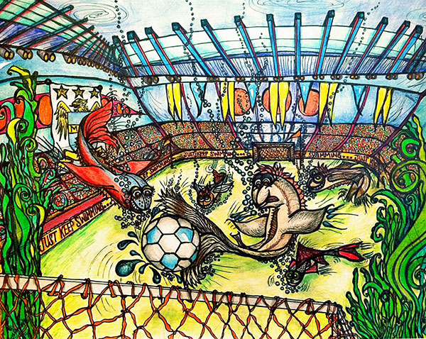 When we first met George, he shared some of his wallpaper designs, and we were awed by their uniqueness and beauty. Equally adept at painting and computer rendering, he produces wallpaper that is hand-painted as well as digitally reproduced. For his first hand-painted wallpaper, he created a strikingly edgy collection of playful nudes and abstracted figures set in gridded arrangements. Most recently, he designed his first line of digital wallpaper, which includes reproductions of his paintings of human body parts, dancers, peasants, mythical creatures, animals, plant-life, sea creatures, and gems. In this same line, he also incorporates found/readymade prints from China. For his next act, George is developing textiles and sculptural lamp shades and is eager to push his creative bounds to the max. He also dreams to begin a wallpaper and design collaborative with the many talented artists he’s met and those he hopes to meet. Based on what we’ve seen, it’s only a matter of time before his dreams become reality.
