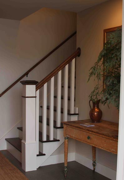 The bar was created using a zinc top and faced with reclaimed boards found in the attic of the circa 1855 building. Finally, I created wallpaper from a hand-drawn 1958 Hillsdale map that was found on Ebay.