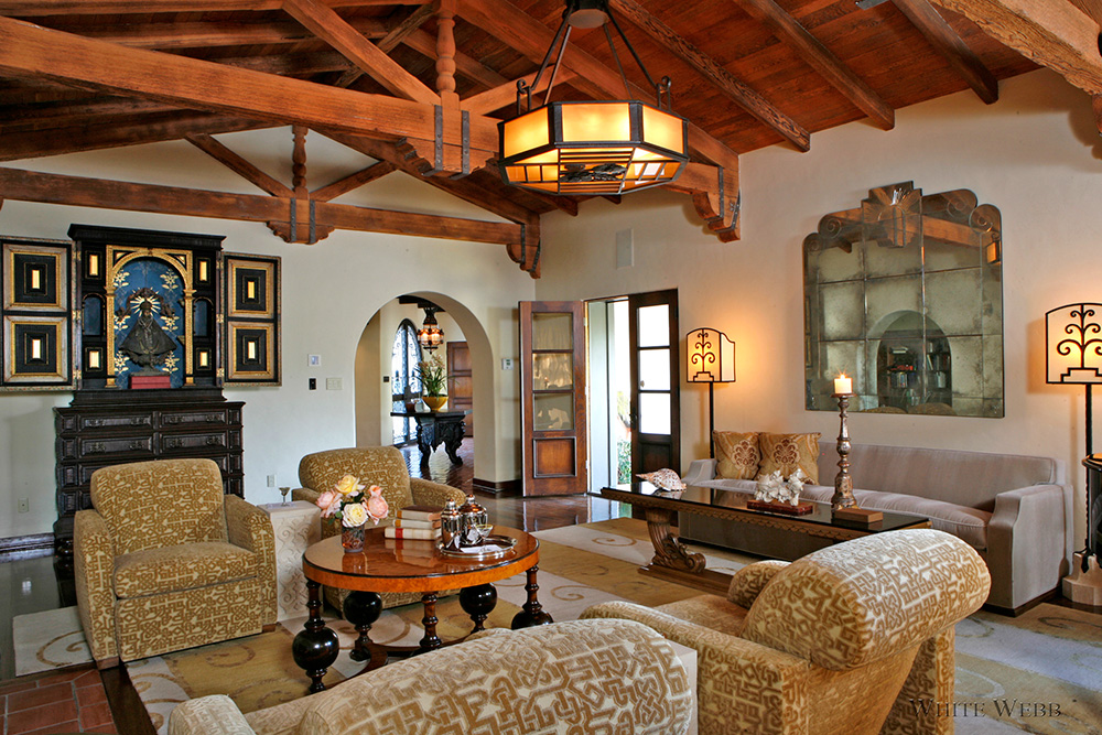 In the late 1920’s California was a little slice of heaven with Spanish style houses built to reflect California’s historic roots. This sprawling Hacienda is a reflection of that halcyon period. Custom pieces were created by White Webb to suit the style of the house and the lifestyle of its owner with special attention paid to comfort and casual living. Antiques from Italy, Spain and South America, plus old California pieces were thrown into the mix and give these rooms an authentic beauty that enhances the architecture.Photo credit: Art Gray