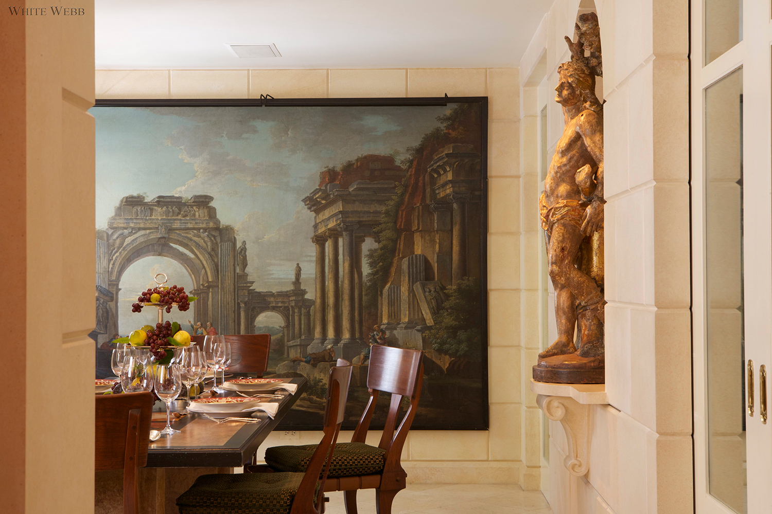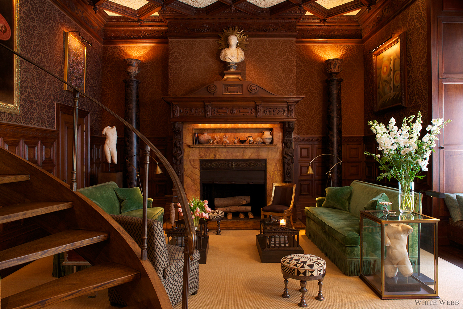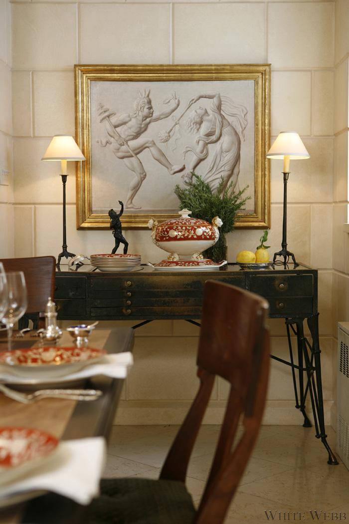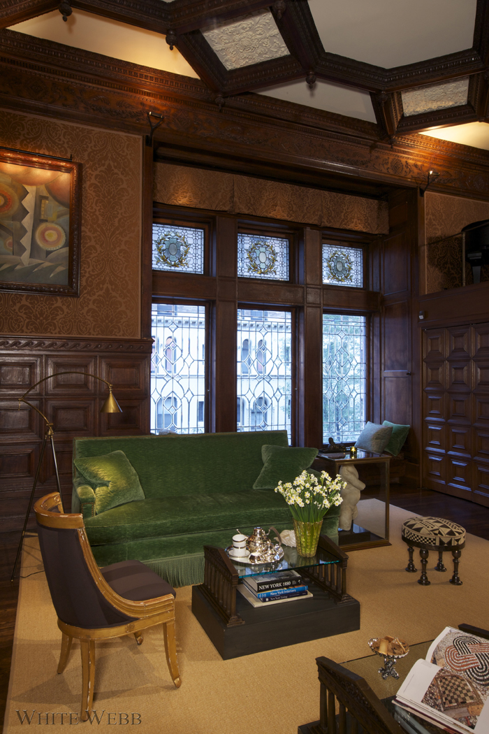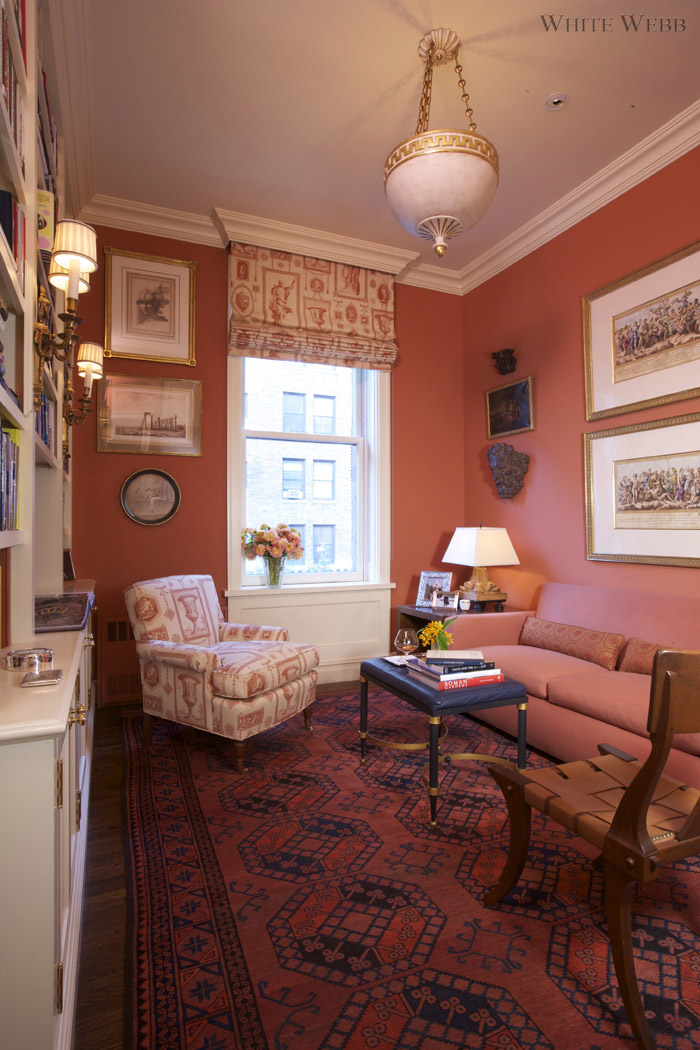 Within a former mansion, now an apartment building, this rare apartment had one great room sorely in need of restoration and a series of rooms with zero history or appeal. What to do? Rather than attempt to recreate rooms on a Stanford White scale, we simply added enough detail to the plain rooms to make them feel as if they belonged in the same house as the grand living room. The dining room was given a simple and elegant neoclassic treatment; while the living room was brought back to it’s former glory and furnished with simple but sumptuous style.Photo credit: Art Gray