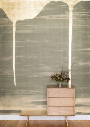 Wallpaper using digital printing of watercolor paintings and silver leafing by Calico Wallpaper