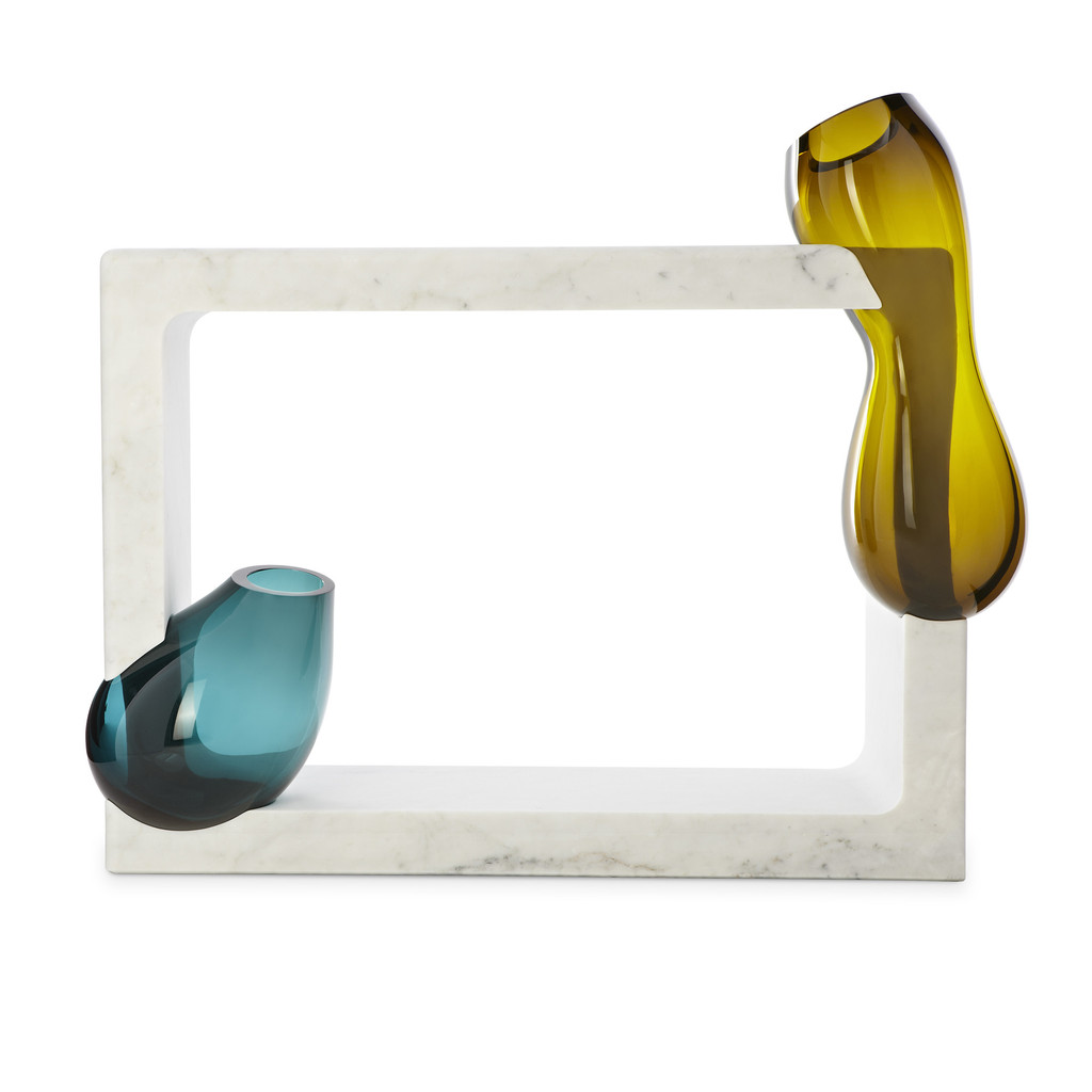 A console made of Carrara Xtra C marble and hand blown Murano glass, by Badled Emmanuel at Twenty First Gallery